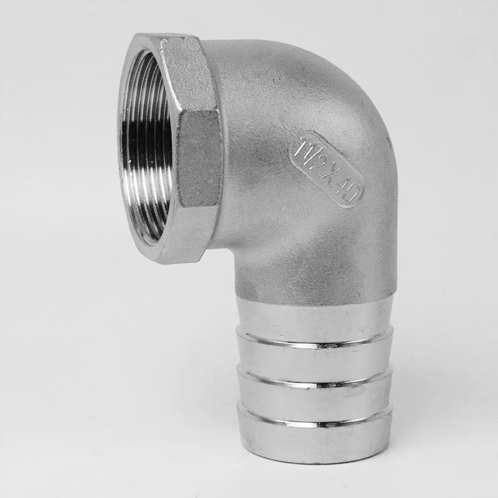 2. Stàladh ceart: Airson a 'cheann snàthaichte, paisg na snàithleanan le teip ròin mus cuir thu an uidheam na àite. Airson a’ cheann bhiorach, sleamhnaich an hose gu h-iomlan sìos gu bonn a’ bharaille agus tèarainte e gu teann le bhith a’ cleachdadh clamp hose stàilinn gun staoin air a shuidheachadh thairis air na fiaclan biorach. Tha an dòigh stàlaidh co-ionann airson an dà chuid an uilinn le snàithlean fireann 90-ceum agus an uilinn le snàithlean boireann 90-ceum, a’ dèanamh cinnteach à pròiseas sìmplidh agus cunbhalach.